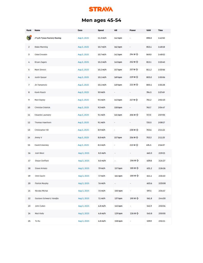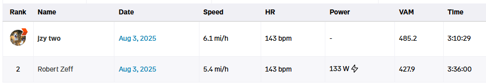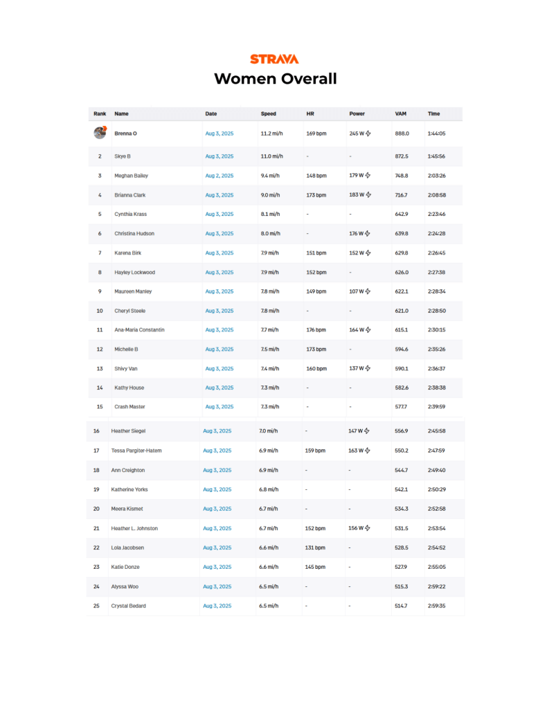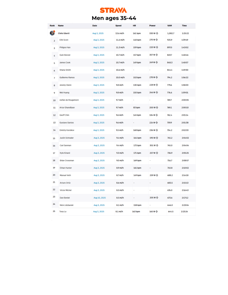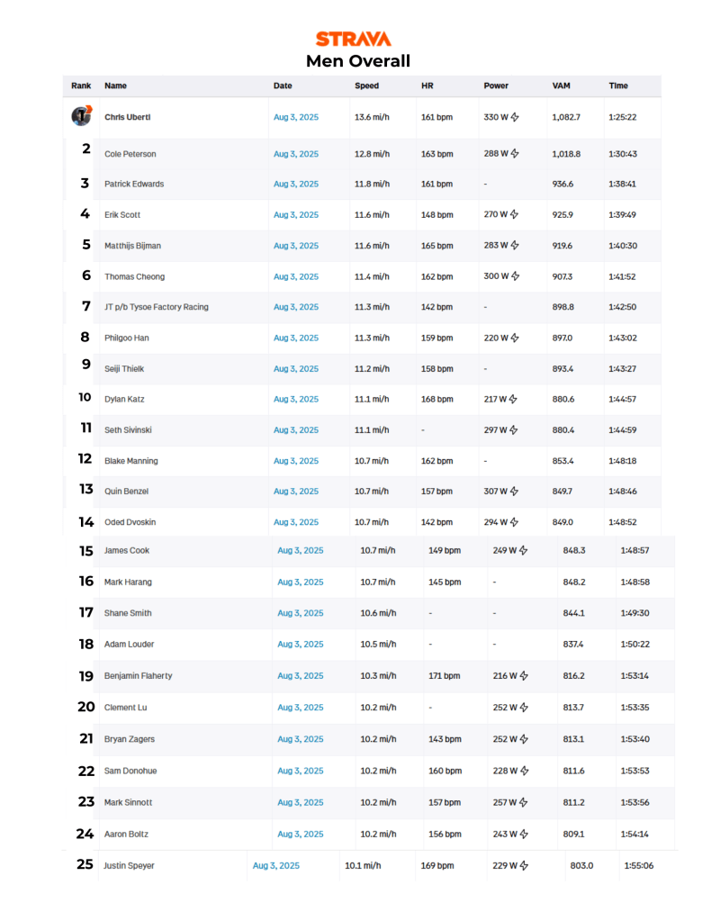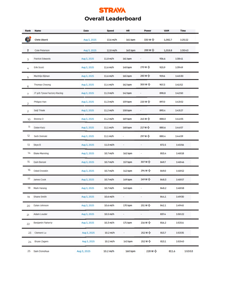 A handful of people had trouble with the Strava segment, but still made ascent times worth noting.